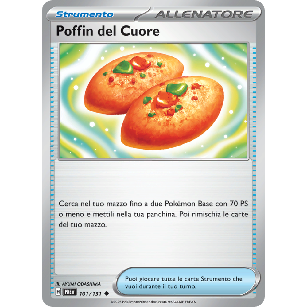 Cerca nel tuo mazzo fino a due Pokémon Base con 70 PS o meno e mettili nella tua panchina. Poi rimischia le carte del tuo mazzo.