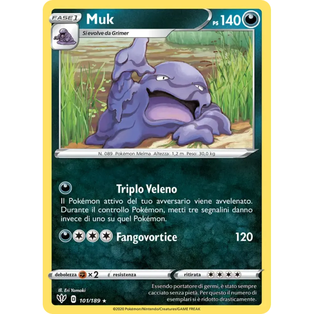 Il Pokémon attivo del tuo avversario viene avvelenato. Durante il controllo Pokémon, metti tre segnalini danno invece di uno su quel Pokémon.