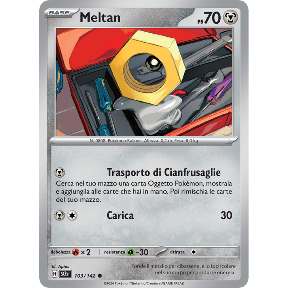 Cerca nel tuo mazzo una carta Oggetto Pokémon, mostrala e aggiungila alle carte che hai in mano. Poi rimischia le carte del tuo mazzo.