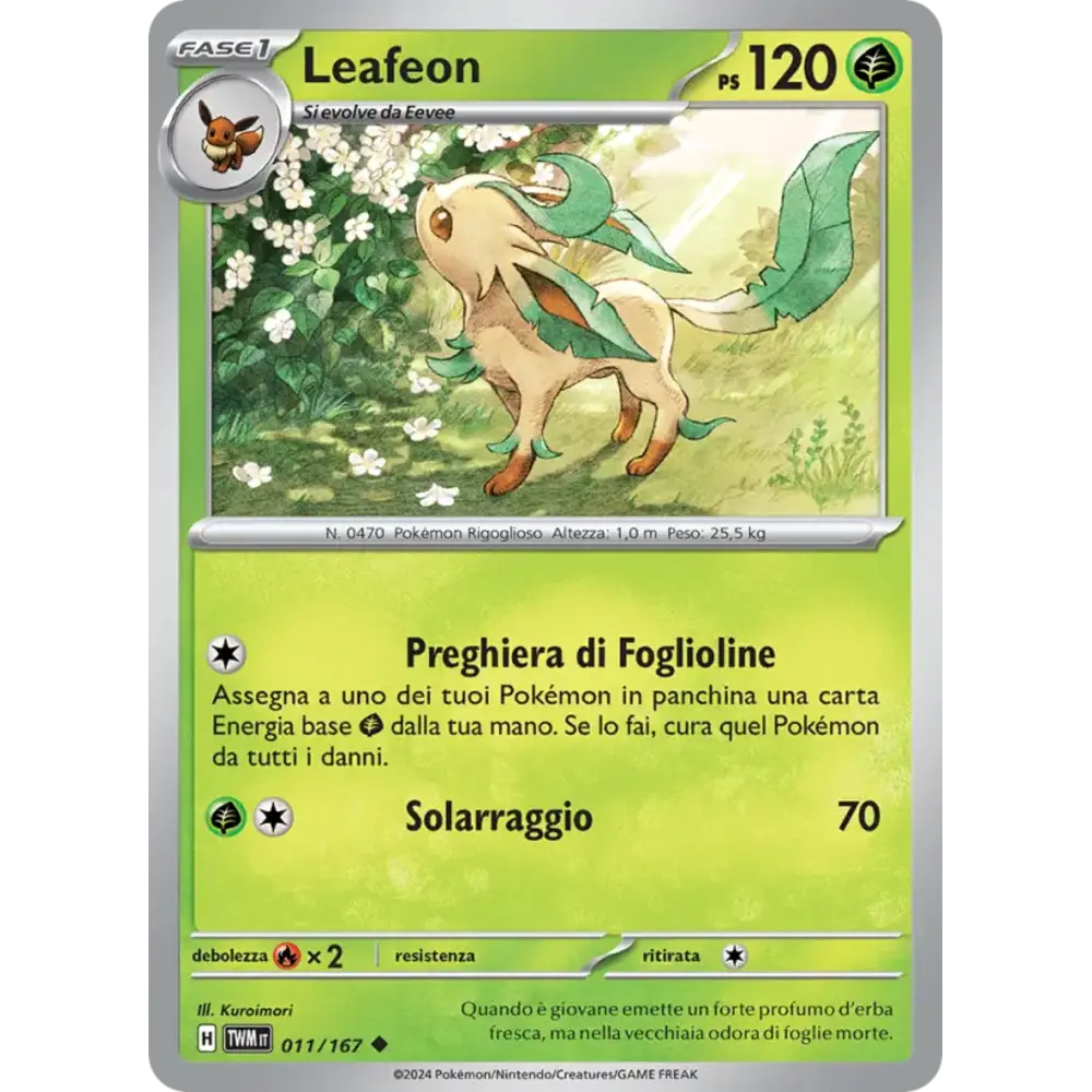 Assegna a uno dei tuoi Pokémon in panchina una carta Energia base Grass dalla tua mano. Se lo fai, cura quel Pokémon da tutti i danni.