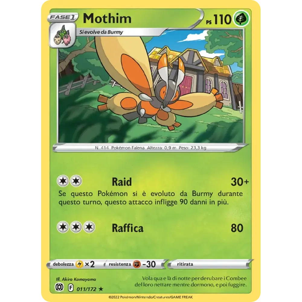 Se questo Pokémon si è evoluto da Burmy durante questo turno, questo attacco infligge 90 danni in più.