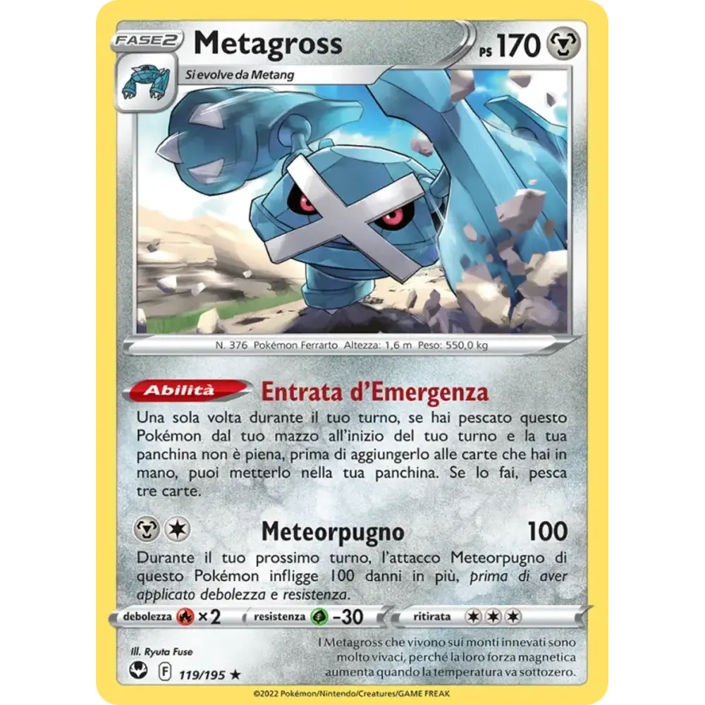 Durante il tuo prossimo turno, l’attacco Meteorpugno di questo Pokémon infligge 100 danni in più, prima di aver applicato debolezza e resistenza.