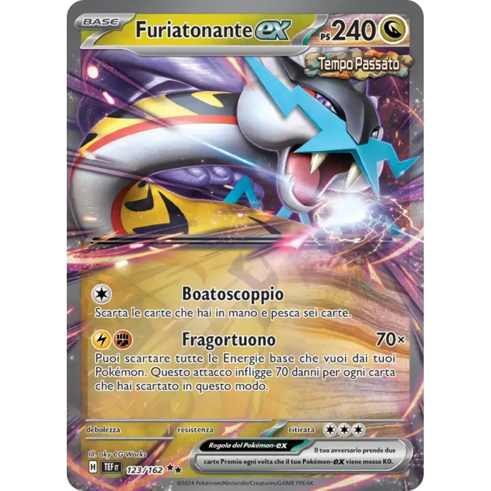 Puoi scartare tutte le Energie base che vuoi dai tuoi Pokémon. Questo attacco infligge 70 danni per ogni carta che hai scartato in questo modo.
