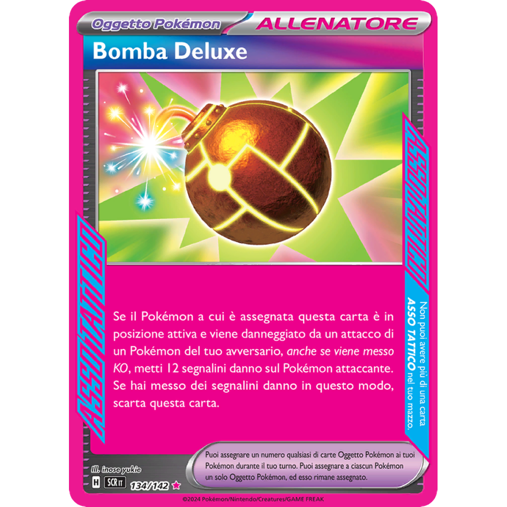 Se il Pokémon a cui è assegnata questa carta è in posizione attiva e viene danneggiato da un attacco di un Pokémon del tuo avversario, anche se viene messo KO, metti 12 segnalini danno sul Pokémon attaccante. Se hai messo dei segnalini danno in questo modo, scarta questa carta.
