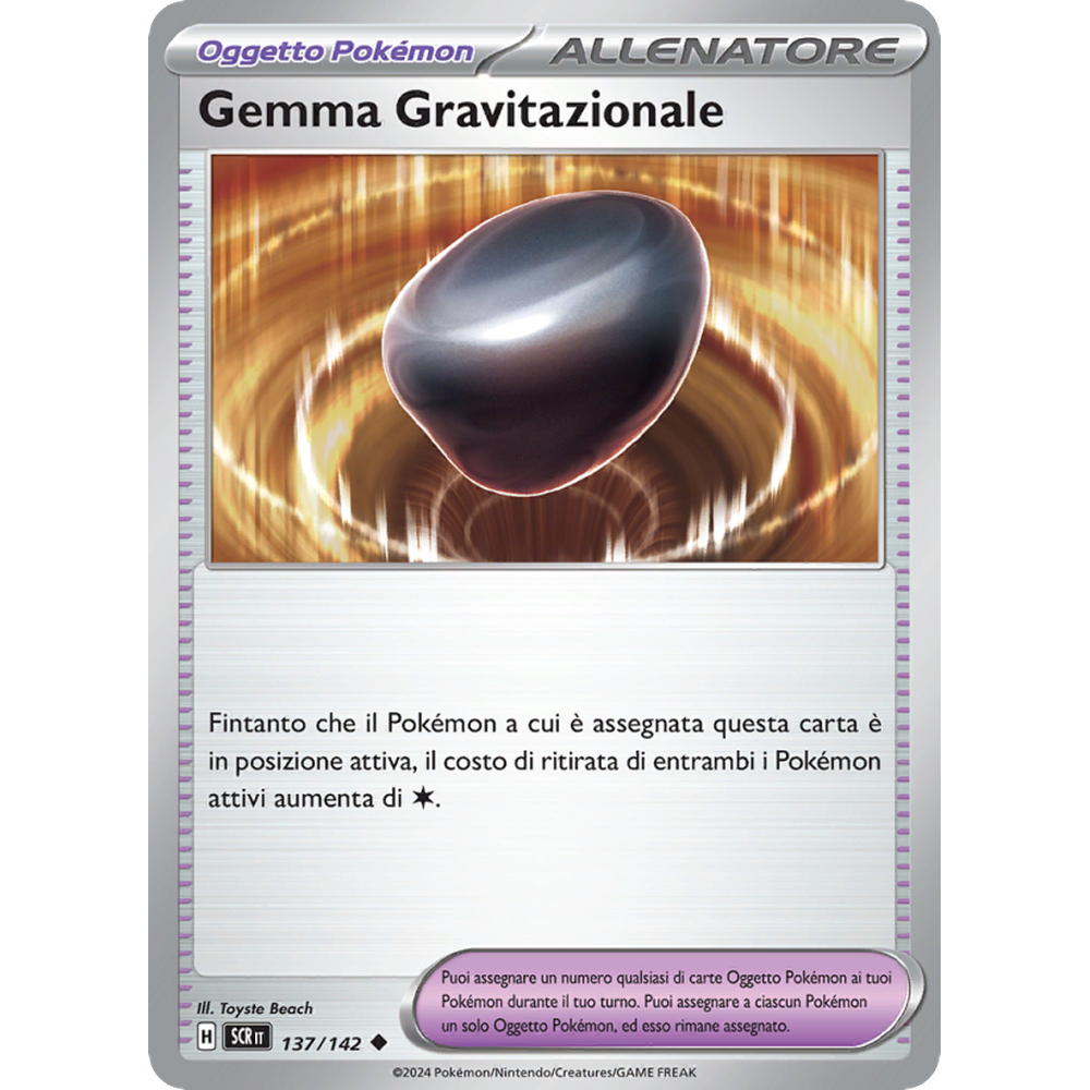 Fintanto che il Pokémon a cui è assegnata questa carta è in posizione attiva, il costo di ritirata di entrambi i Pokémon attivi aumenta di Colorless.