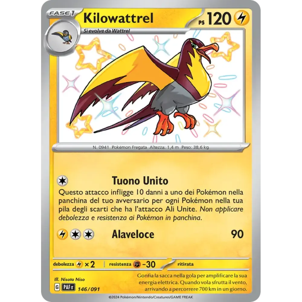 Questo attacco infligge 10 danni a uno dei Pokémon nella panchina del tuo avversario per ogni Pokémon nella tua pila degli scarti che ha l’attacco Ali Unite. Non applicare debolezza e resistenza ai Pokémon in panchina.