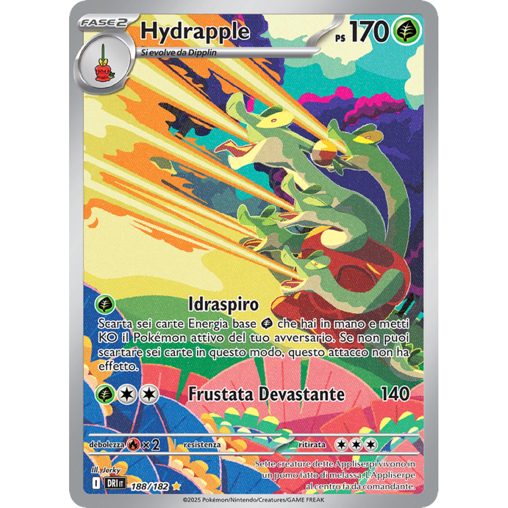 Scarta sei carte Energia base {G} che hai in mano e metti KO il Pokémon attivo del tuo avversario. Se non puoi scartare sei carte in questo modo, questo attacco non ha effetto.