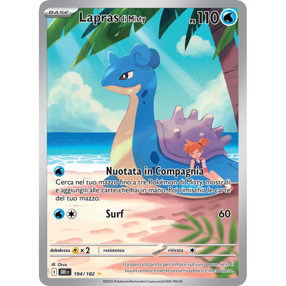 Cerca nel tuo mazzo fino a tre Pokémon di Misty, mostrali e aggiungili alle carte che hai in mano. Poi rimischia le carte del tuo mazzo.