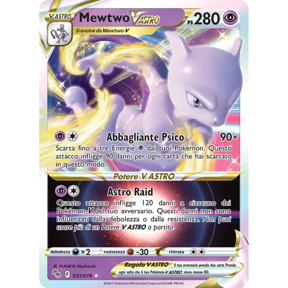 Questo attacco infligge 120 danni a ciascuno dei Pokémon-V del tuo avversario. Questi danni non sono influenzati dalla debolezza o dalla resistenza. Non puoi usare più di un Potere V ASTRO a partita.