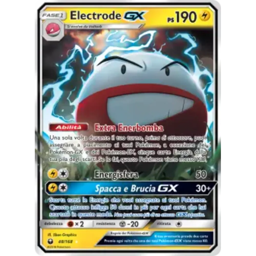 Scarta tutte le Energie che vuoi assegnate ai tuoi Pokémon. Questo attacco infligge 50 danni in più per ogni carta che hai scartato in questo modo. Non puoi usare più di un attacco GX a partita.