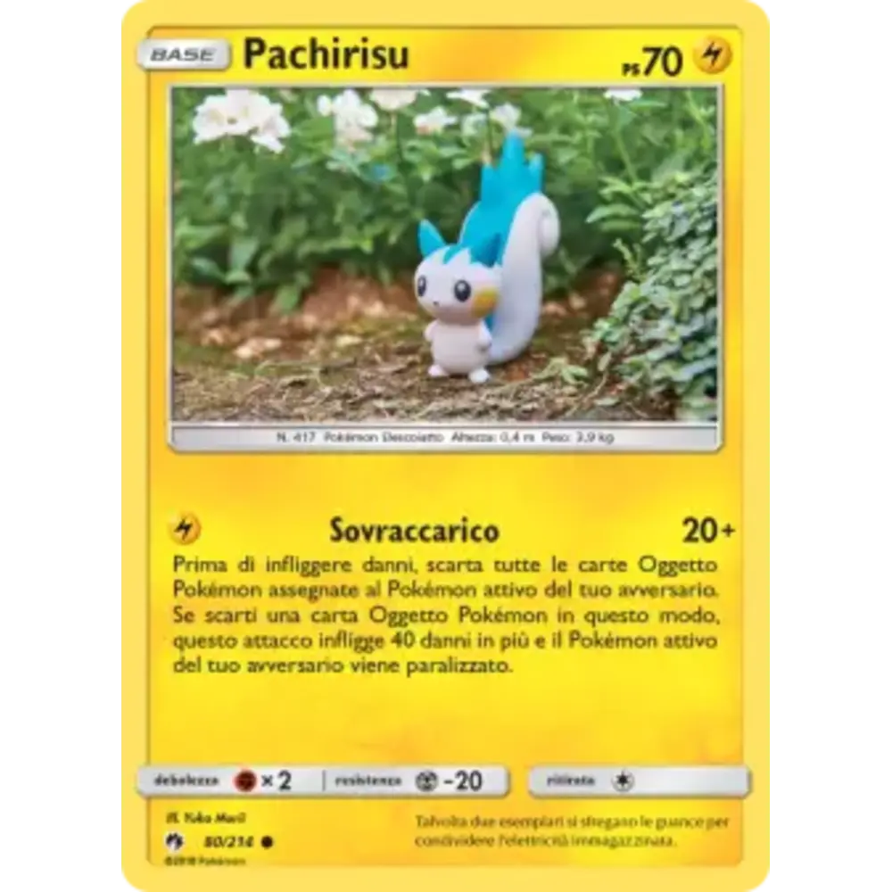 Prima di infliggere danni, scarta tutte le carte Oggetto Pokémon assegnate al Pokémon attivo del tuo avversario. Se scarti una carta Oggetto Pokémon in questo modo, questo attacco infligge 40 danni in più e il Pokémon attivo del tuo avversario viene paralizzato.