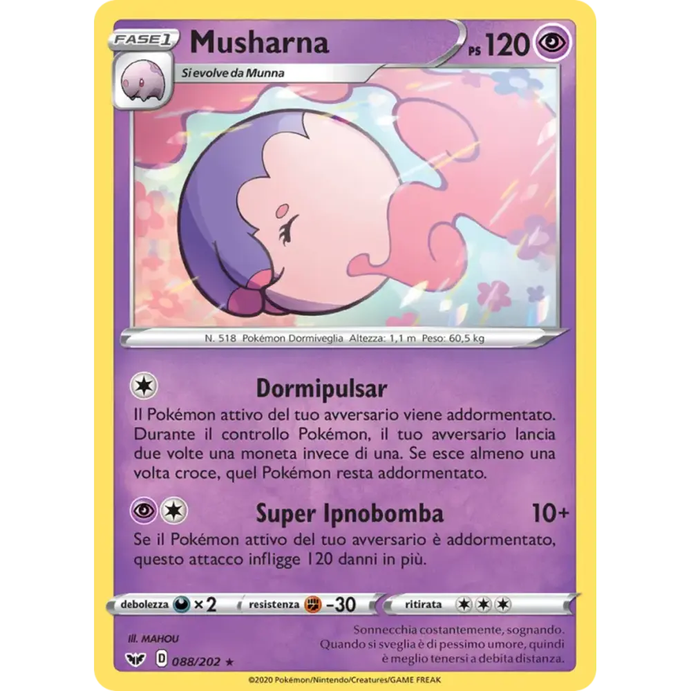 Il Pokémon attivo del tuo avversario viene addormentato. Durante il controllo Pokémon, il tuo avversario lancia due volte una moneta invece di una. Se esce almeno una volta croce, quel Pokémon resta addormentato.