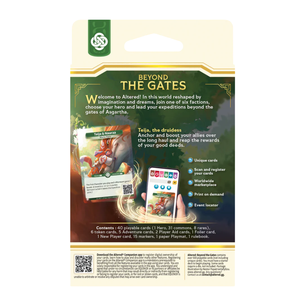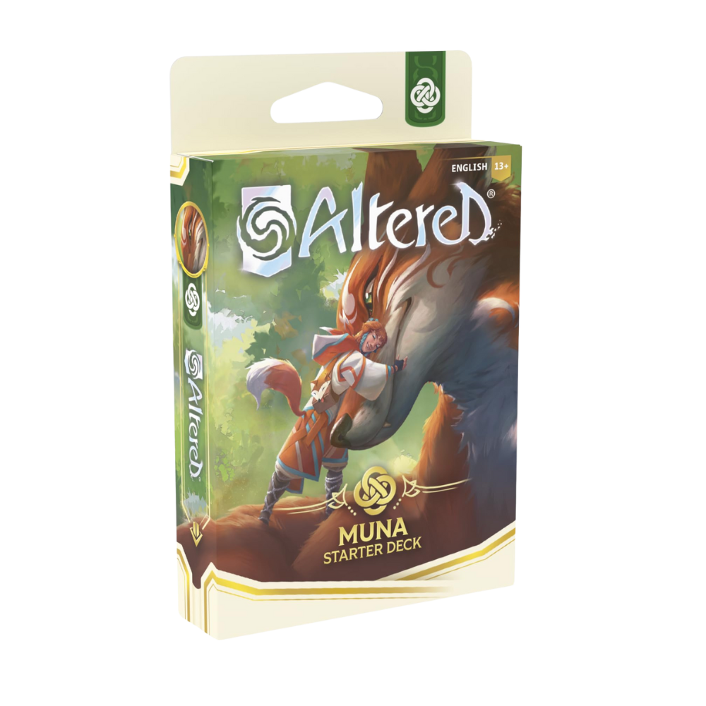 Entra nel vivo dell’azione con lo Starter Deck Muna di Altered Beyond the Gates! Questo mazzo precostruito è il punto di partenza ideale per scoprire le meccaniche di gioco uniche di Altered e iniziare subito a sfidare i tuoi amici.