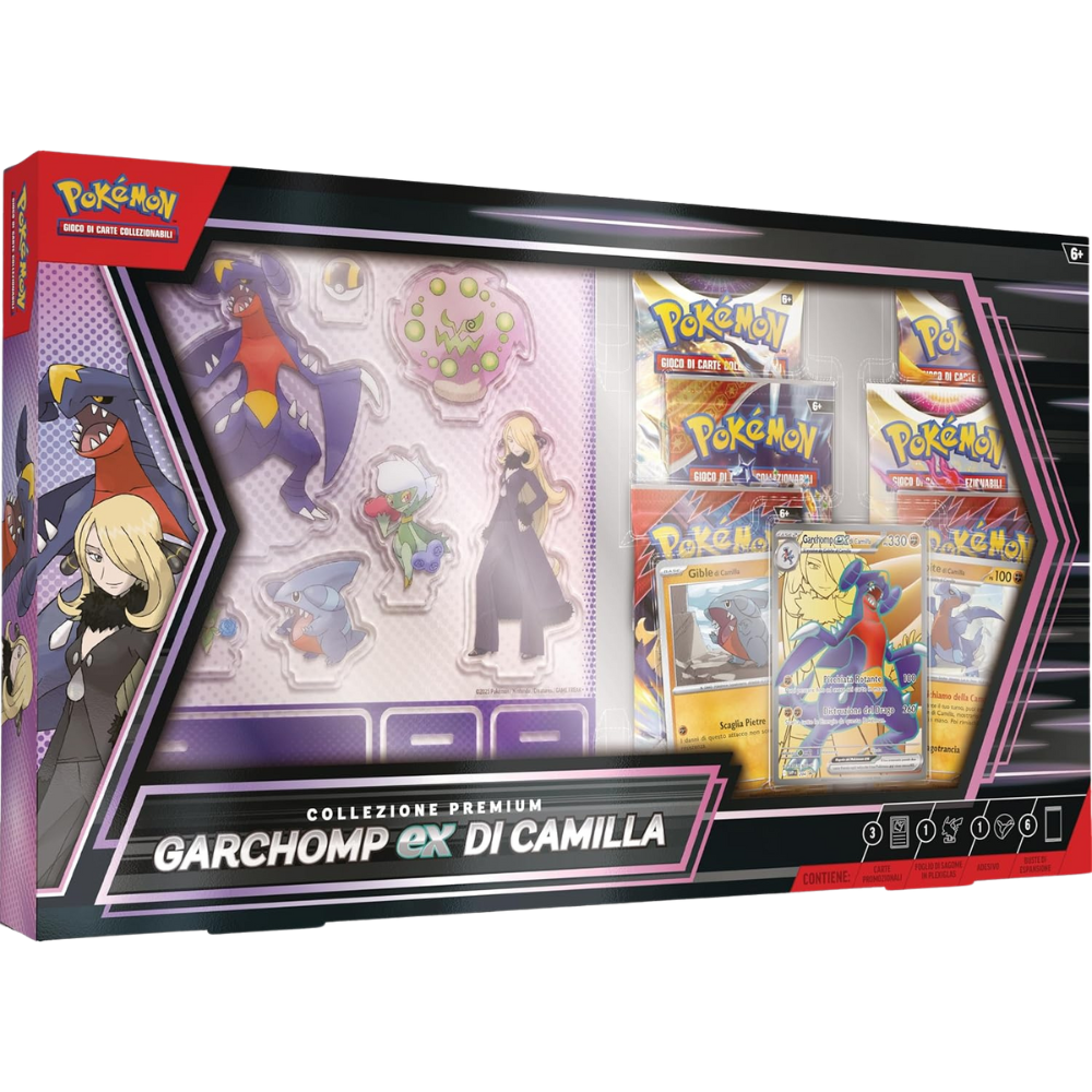 La Collezione Garchomp-ex di Camilla è un imperdibile set speciale del Gioco di Carte Collezionabili Pokémon, perfetto per i fan di uno dei Draghi più iconici e della sua Allenatrice d’élite, Camilla! Questa collezione ti permette di aggiungere alla tua squadra il potente Garchomp-ex in versione full-art promozionale e una serie di accessori a tema.