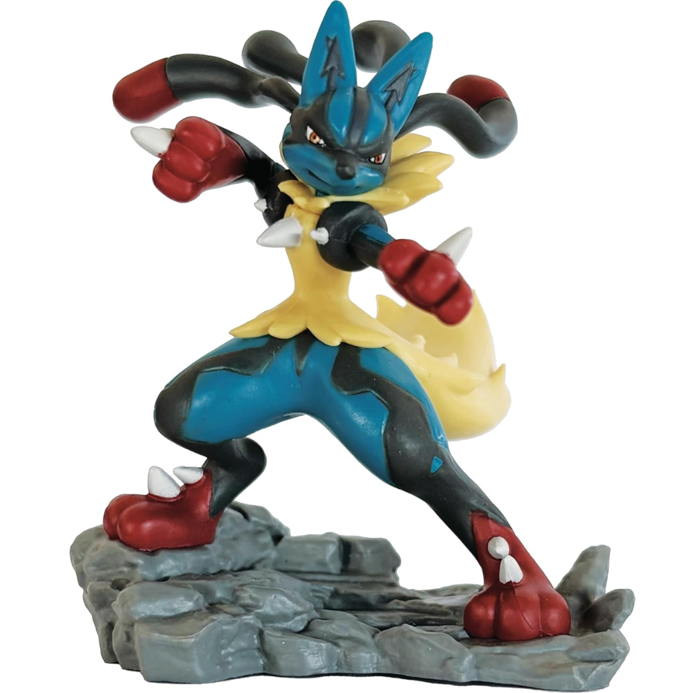 L’aspetto più suggestivo del prodotto è la presenza della statuina, realizzata con una cura eccezionale. La scultura riproduce Mega Lucario in posa dinamica, come se fosse pronto ad attaccare o a concentrare l’aura. I dettagli del corpo, la forma dei ciuffi e dei sensori, le ombreggiature e la resa dei materiali danno vita a un oggetto che trasmette energia e carisma. È una statuina che si presta alla perfezione per essere esposta su una scrivania, all’interno di una vetrina o accanto a una collezione di megavoluzioni. La qualità del materiale è solida, con una buona resistenza alle cadute accidentali e una colorazione stabile nel tempo.