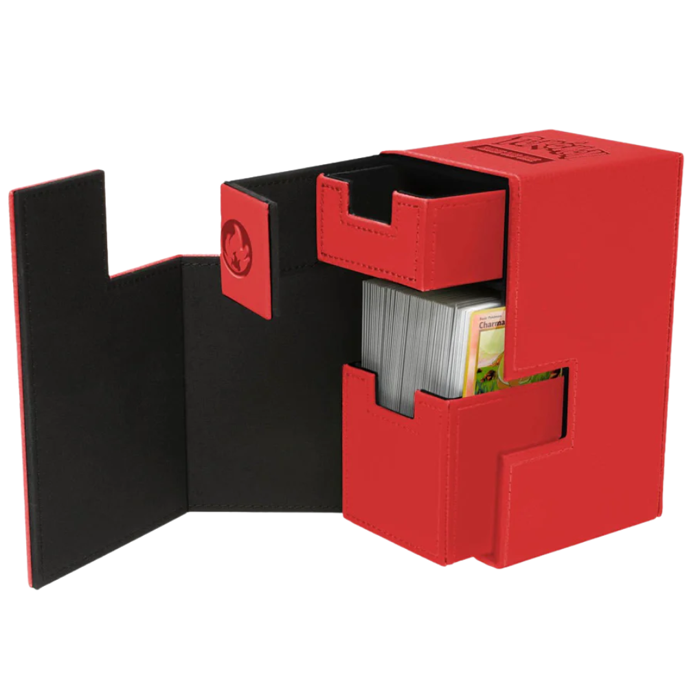 Realizzata con materiali di alta qualità, questa deck box è progettata per contenere oltre 100 carte con bustine protettive, mantenendole sempre al riparo da pieghe, graffi o umidità.