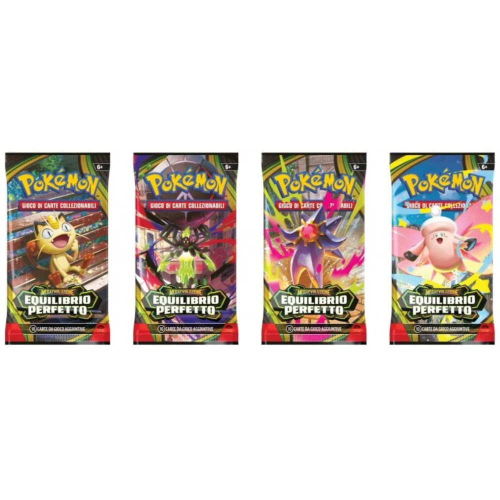Il Set 4 Buste MegaEvoluzione Equilibrio Perfetto (ITA) include 4 bustine ufficiali Pokémon con artwork assortiti, perfette per collezionare e vivere l’esperienza completa dell’espansione.