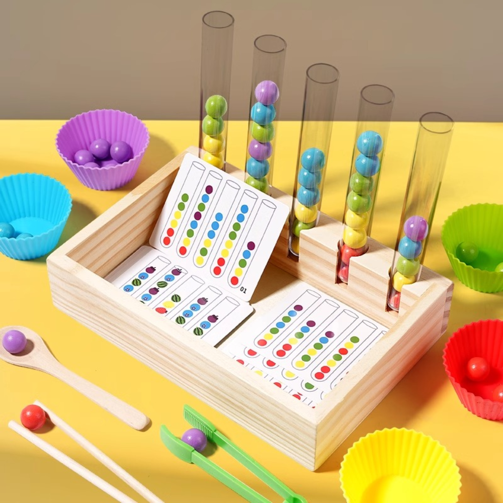 Il Gioco Montessori Tubes & Balls è progettato per accompagnare i bambini in un percorso educativo ricco di stimoli, attività logiche e piccoli esercizi di precisione. L’idea alla base del gioco è semplice ma estremamente efficace: inserire le palline colorate nei tubi trasparenti seguendo le carte attività incluse.