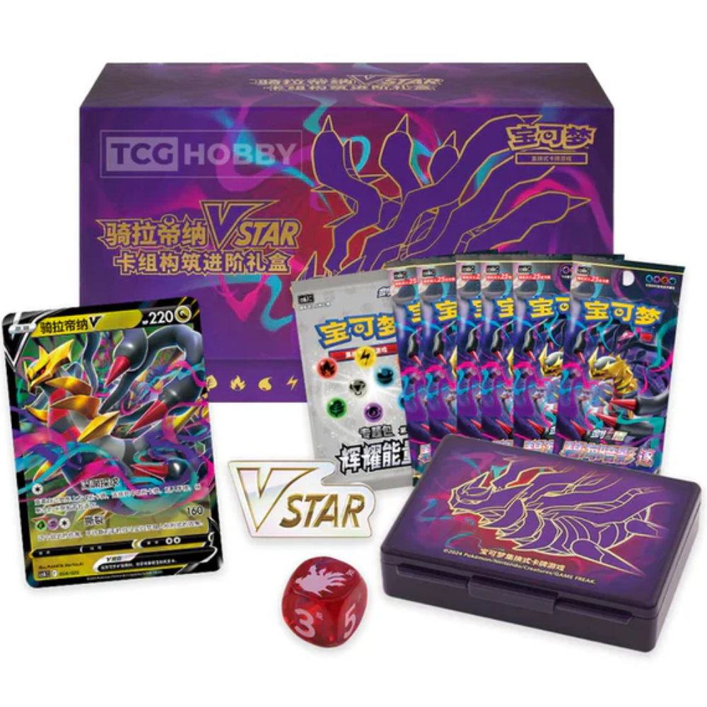 La Giratina VSTAR Deck Building Advanced Gift Box (CHN) è un set completo pensato per chi vuole potenziare il proprio mazzo con carte esclusive e accessori dedicati. Include bustine, carta promo Giratina V, segnalini, dadi e una scatola rigida illustrata, ideale sia per il gioco che per la collezione.