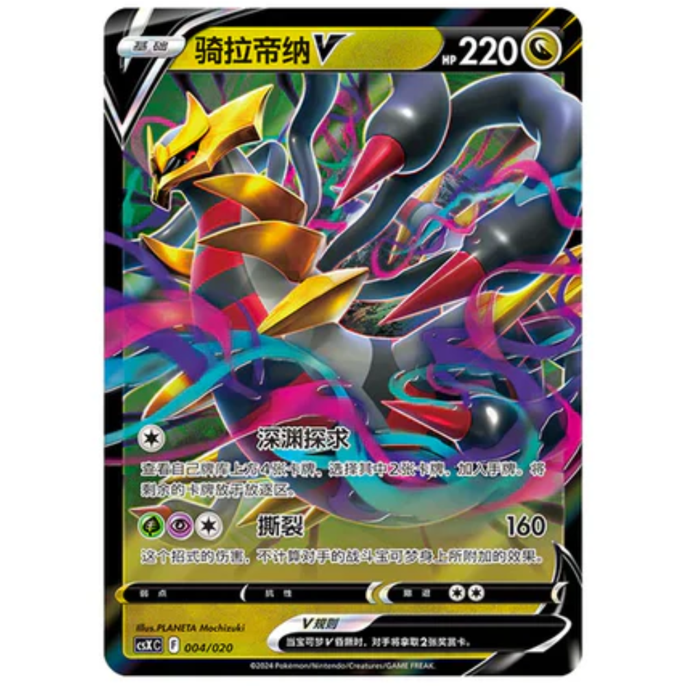 Fin dal primo sguardo, la confezione si distingue per il suo design spettacolare: una grafica intensa, con colori neon e linee astratte che richiamano l’energia distorta tipica di Giratina. Il box rigido può essere utilizzato come contenitore per carte, deck box da torneo o semplicemente come esposizione da collezione. La qualità della stampa e della struttura lo rende una delle gift box più curate del mercato cinese.