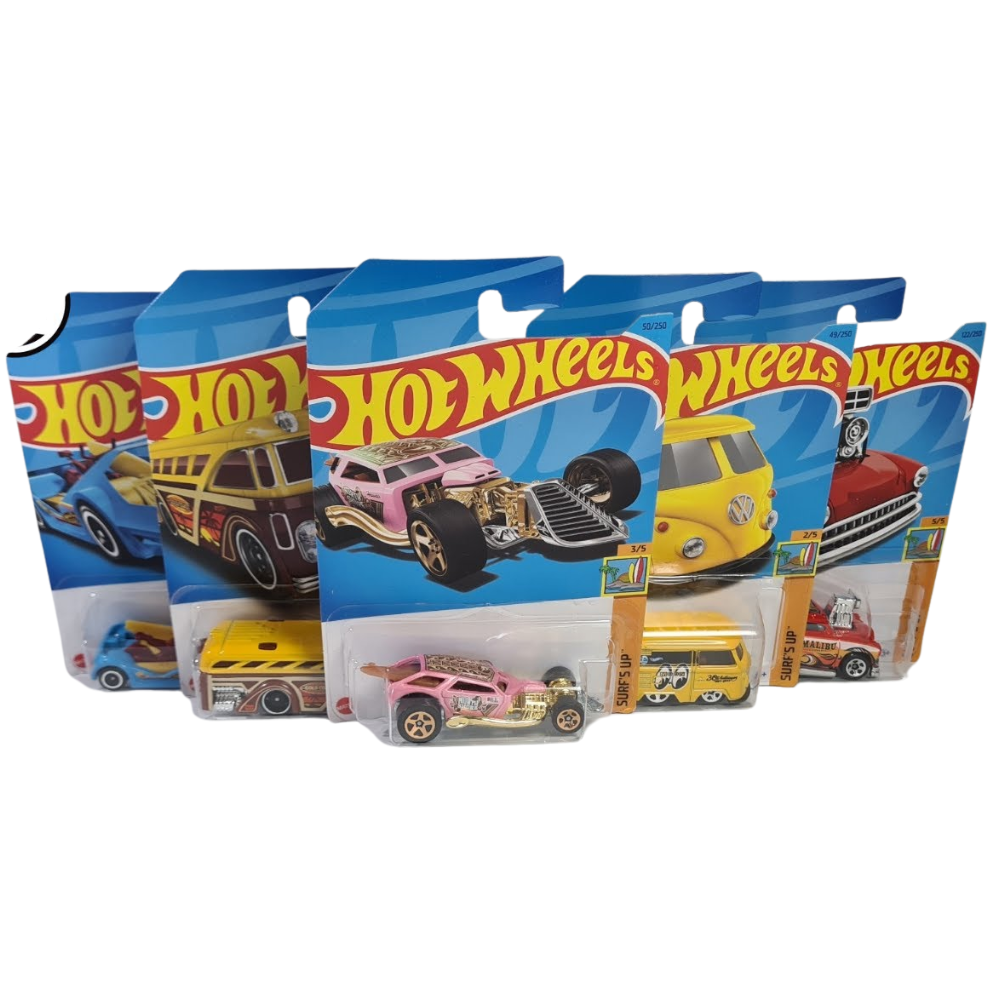La serie Hot Wheels Surf’s Up è un inno all’estate, alla libertà e allo stile unico della cultura surf. Pensata per chi ama modelli originali e fuori dal comune, questa collezione porta sulle piste Hot Wheels l’atmosfera delle spiagge californiane e delle onde oceaniche, trasformando le macchinine in veicoli spettacolari arricchiti da tavole da surf integrate, livree coloratissime e dettagli estivi.
