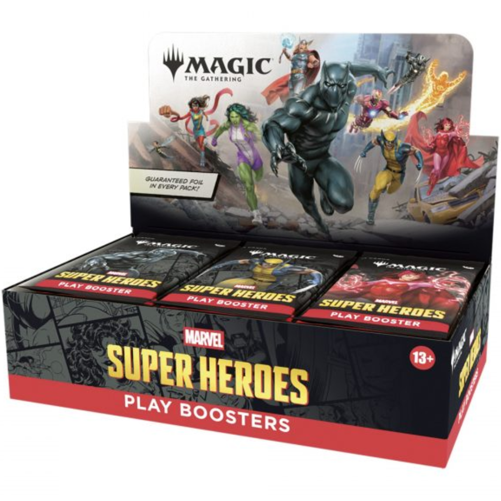 Display Play Booster Magic The Gathering dedicato a Marvel Super Heroes, pensato per chi vuole giocare, collezionare e vivere l’esperienza Marvel all’interno di Magic.