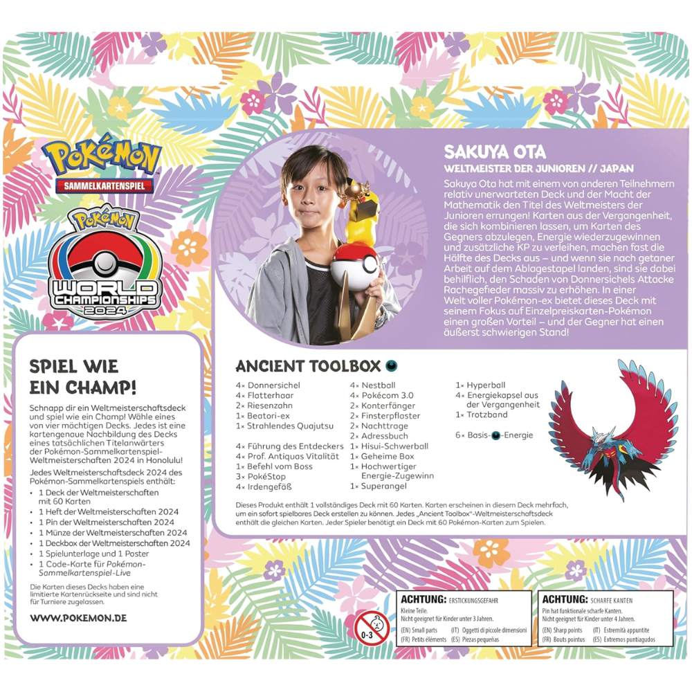 Il Mazzo dei Campionati Mondiali 2024 – Sakuya Ota rappresenta uno degli esempi più raffinati di come un deck competitivo del GCC possa prendere forma attraverso una combinazione precisa di strategie, sinergie e risposte adattive al metagame dell’anno. La versione replicata in questo prodotto ripercorre fedelmente la lista Ancient Toolbox, utilizzata da Ota durante i Pokémon World Championships 2024 a Honolulu, un evento che ha lasciato un segno indelebile nell’immaginario dei giocatori per atmosfera, qualità delle partite e identità visiva unica.