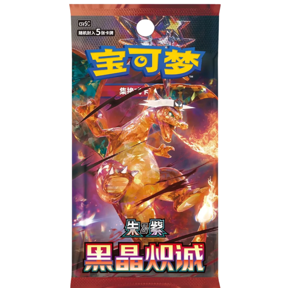 Il display contiene 15 bustine, in un formato slim compatto e pratico. Questo tipo di confezione è perfetto sia per aperture occasionali sia per chi vuole iniziare una collezione dedicata alle serie cinesi. Le bustine possono includere carte rare, holo, illustrazioni alternative e Pokémon iconici come Charizard, protagonista dell’artwork principale del prodotto.