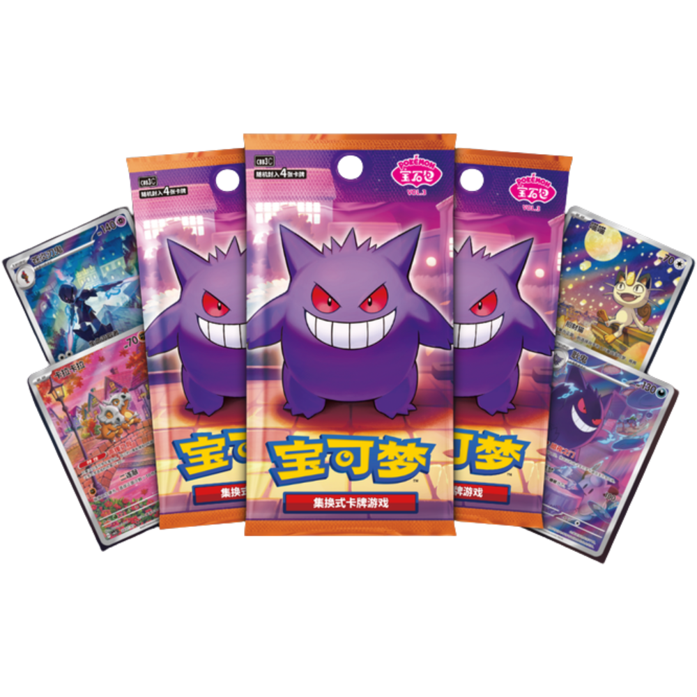 Il Gem Pack Vol. 3 in versione cinese è un box vivace e ricco di sorprese, dedicato al popolarissimo Gengar. Perfetto per collezionisti che amano prodotti particolari e varianti asiatiche.