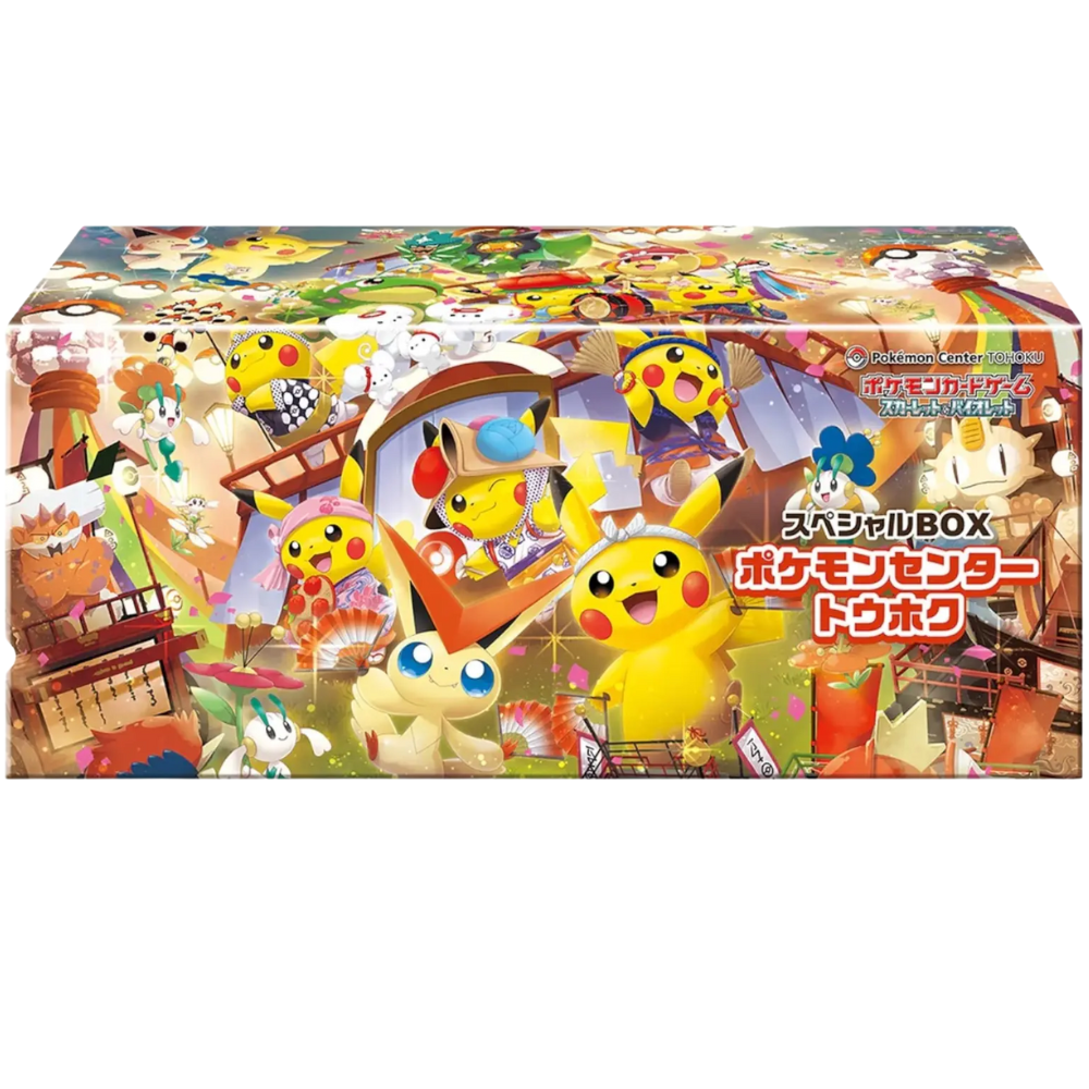 Il Pokémon Center Tohoku Special Box è un’esclusiva giapponese imperdibile per i fan di Pokémon TCG e collezionisti. Questo set limitato celebra la tradizione dei matsuri con illustrazioni festive di Pikachu, Victini, Shaymin e Meowth, trasformandolo in un vero gioiello da esposizione. All’interno trovi deck box, sleeves e accessori premium con design esclusivo Pokémon Center, perfetti per proteggere e organizzare le tue carte. Raro e ricercato in Italia ed Europa, è un prodotto ufficiale da collezione che unisce cultura giapponese e mondo Pokémon, destinato a crescere di valore nel tempo.