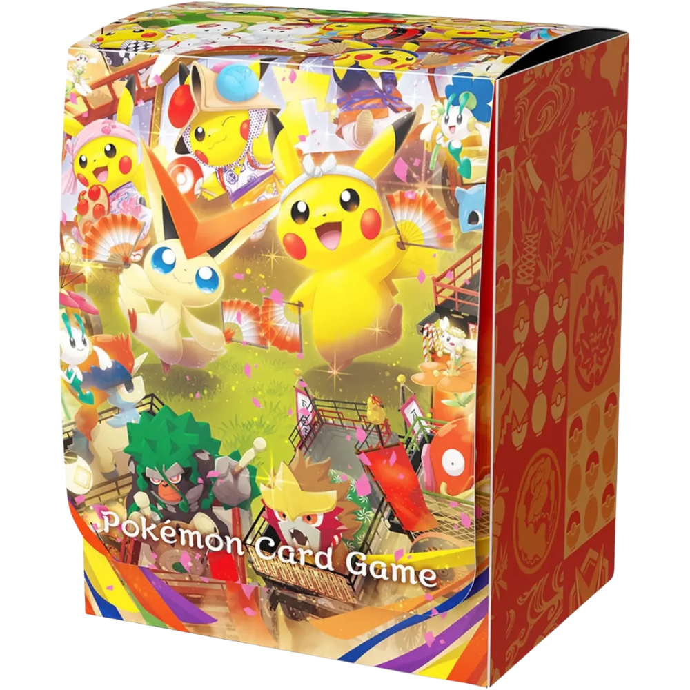 Il box celebra la cultura giapponese con illustrazioni coloratissime che raffigurano Pikachu, Victini, Shaymin, Meowth e altri Pokémon iconici in versione matsuri, il tipico festival giapponese ricco di costumi tradizionali, lanterne e decorazioni. Questo stile grafico esclusivo rende il box non solo un contenitore di accessori, ma anche un vero pezzo da collezione da esposizione, perfetto per chi ama il connubio tra mondo Pokémon e tradizione nipponica.