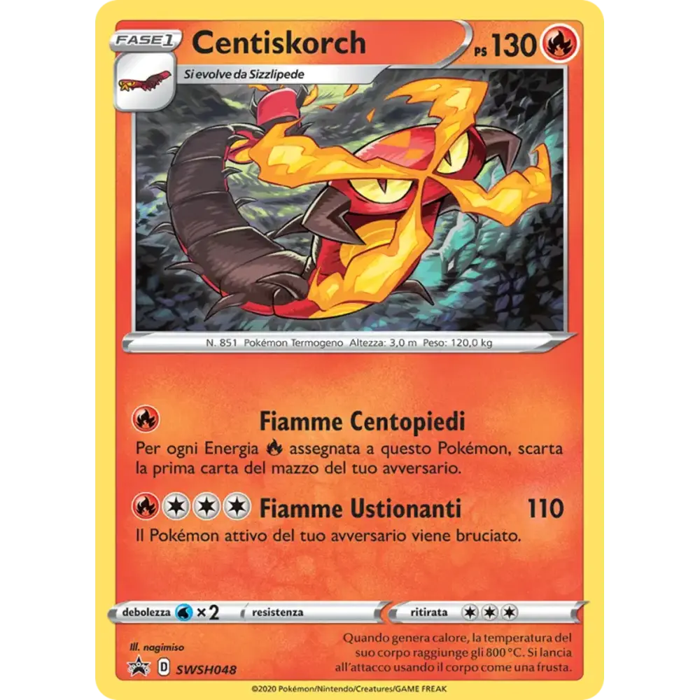 Per ogni Energia Fire assegnata a questo Pokémon, scarta la prima carta del mazzo del tuo avversario.