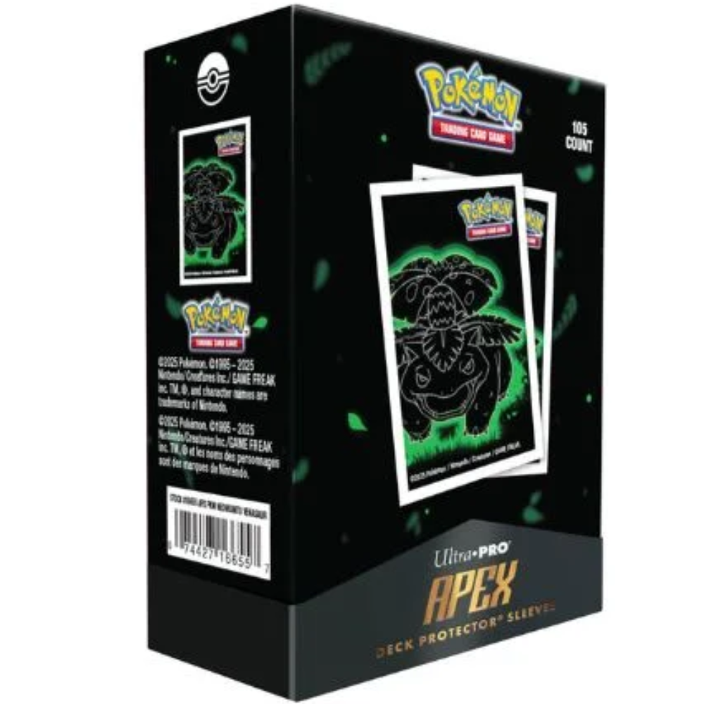 Bustine protettive Ultra Pro Apex dedicate a Venusaur, pensate per offrire protezione affidabile e uno stile distintivo ai mazzi da gioco. Una soluzione premium per chi cerca qualità, resistenza e un design iconico.